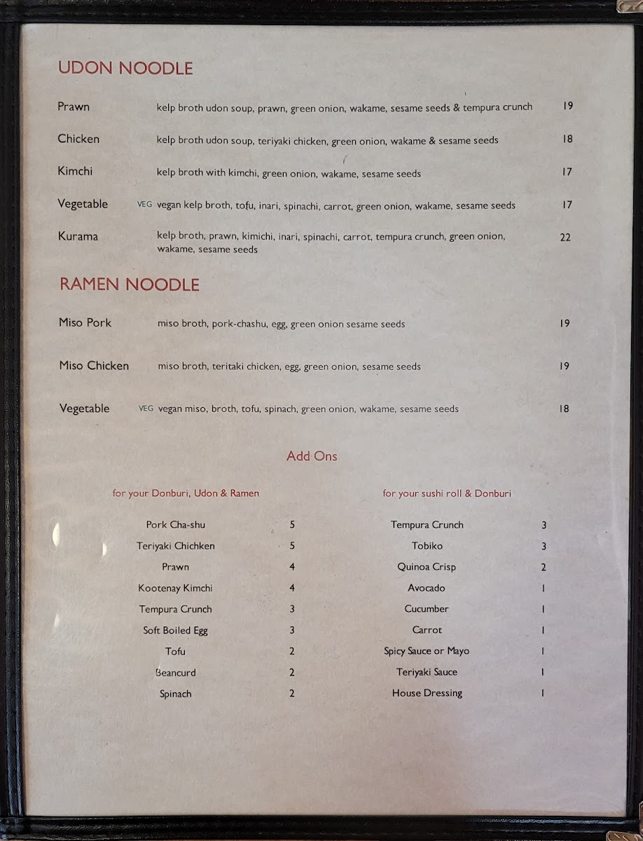 The menu at Kurama Sushi Japanese Restaurant in Nelson offers a delightful array of authentic Japanese dishes, perfect for both sushi lovers and those seeking traditional Japanese flavors. Among the standout options, the Sushi Roll with Tuna is a must-try for its fresh, high-quality tuna and delicate presentation. Another highlight is the Cucumber Plum Maki Sushi, offering a refreshing and tangy twist that pairs well with the restaurant's selection of other rolls. The Sunomono Salad, with its light and vinegary dressing, is the perfect balance to complement the more indulgent dishes. For a heartier option, the Unagi Wasabi M delivers a flavorful mix of grilled eel with a touch of wasabi, creating a satisfying and savory experience. These dishes, along with others, showcase Kurama Sushi’s commitment to fresh ingredients and traditional preparation techniques, making it a standout choice for a flavorful Japanese dining experience.